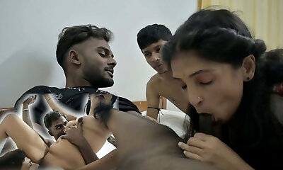Indian Desi Lustful Hot Bhabhi Has Gangbang with Five Big Cock Folks and Pop-shots (Hindi Audio)