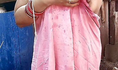 Indian building wife bathing outside