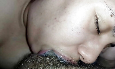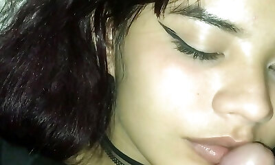 Passionate and rock hard blowjob smelling cock and licking hairs. Spunk in mouth