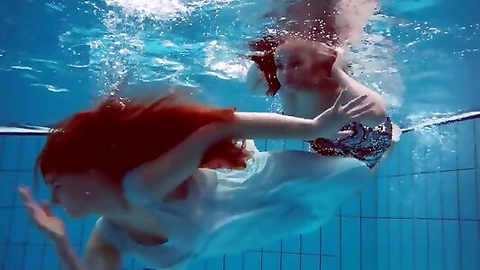 Good-sized Boobed Furry And Tattoed Teenies In The Pool
