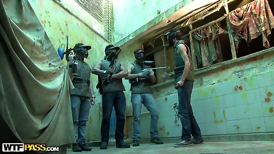 Horny paintball game turns into pleasuring mischievous dark haired