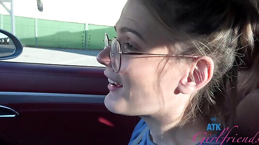 Horny Riley Rose enjoys while being fingered in the car - POV