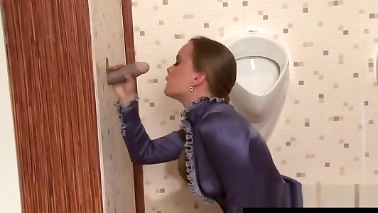 Classy chick deep throats manhood at toilet gloryhole