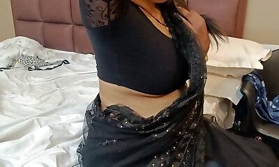 Stunning Indian wifey in beautiful black lingerie rides horn