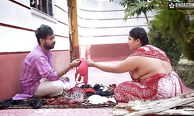 While the Desi stepmom washes boulder-holder & underpants, step-mom took off the stepson's pants and Naked him, Then asks him to plow her - Cum